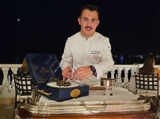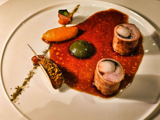 Cette partition gastronomique a révélé des créations saisissantes : artichaut violet en barigoule, nappé d’un nuage de navet blanc, poireau confit et brûlé, sublimé de perles d’huître et d’émulsion de phytoplancton au caviar Osciètre, bar sauvage marbré d’algues, accompagné de spaghetti de la mer, velour iodé de caviar Kristal, ormeaux à la Grenobloise. L’alliance terre-mer culminait avec les gamberonis de San Remo et le râble de lapin rôti au beurre noisette, avant de s’achever sur des notes sucrées inventives : concombre confit au sucre d’Okinawa, variation sur la figue en transparence, et soufflé au confit de mandarine berlugane au Grand Marnier, rose givrée.