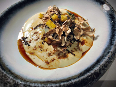 Quant à Bessem, On aime son humilité, sa bienveillance, sa générosité et son fort talent culinaire malheureusement pas encore assez reconnu. On a pu de nouveau en juger sur pièce lors d’un dîner qui débuta par des petits bonheurs fins et aboutis, tarte croustillante et houmous oriental, légumes en pickles, focaccia à l’huile d’olive et graines de nigelle, croquettes de brandade de morue citronnée, pointe d’harissa et sucettes de foie gras et piment d’Espelette, chocolat noir, pain d’épices, et champagne Jacquesson Cuvée 745. S’ensuivit, une royale de topinambour truffé, émulsion parmesan, poudre de cacao, betterave marinée, de l’anguille fumée laquée au caramel de soja, patate douce à la cardamome, crumble de paprika fumé, son entrée fétiche, l’œuf parfait, tombée d’épinards, mousseline de pomme de terre, champignons déshydratés, jus de viande, truffe Melanosporum. On adjoindra la noix de saint-jacques, purée de céleri rave confit, jus de persil fumé à l’ail confit, caviar osciètre royal de Petrossian, champignons crus, jus de viande, émulsion de bonite fumée, et le retour de pêche locale (pagre, ombrine, saint-pierre), purée d’artichaut citronnée, condiment épinard-parmesan-girofle, assortiment de légumes cuits et crus du moment, pousses de livèche, jus d’arêtes safrané au yuzu et huile de combawa.