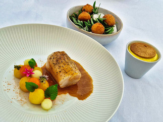 Chaque recette, qui met en valeur la fraîcheur et la diversité des prises du jour du pêcheur local Julien Loire, rend hommage à la Méditerranée, offrant une harmonie de saveurs qui s'accorde avec le rythme des vagues et des saisons. Du cromesqui d'escargot de la ferme d'Espigaou aux noisettes de mer de Mathieu Chapel, en passant par une guimauve cacahuète accompagnée de cornichon et bœuf séché, et une tartelette de blette inspirée du barbajuan, le voyage culinaire débute avec audace. Il se poursuit avec des carottes mariées à un cœur d'abricot, rehaussées de pickles de graines de moutarde et de fleurs du jardin.